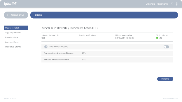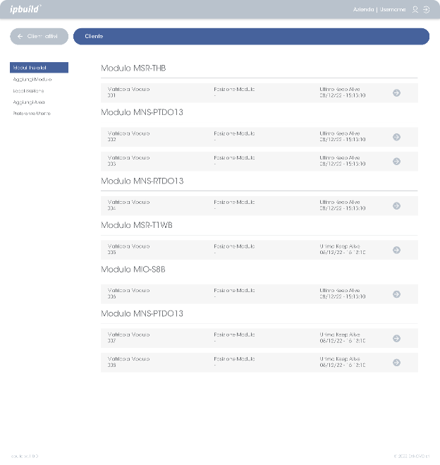 • Showing on the home page a list of modules installed organized by type. The most important insights about position and state are displayed as well.