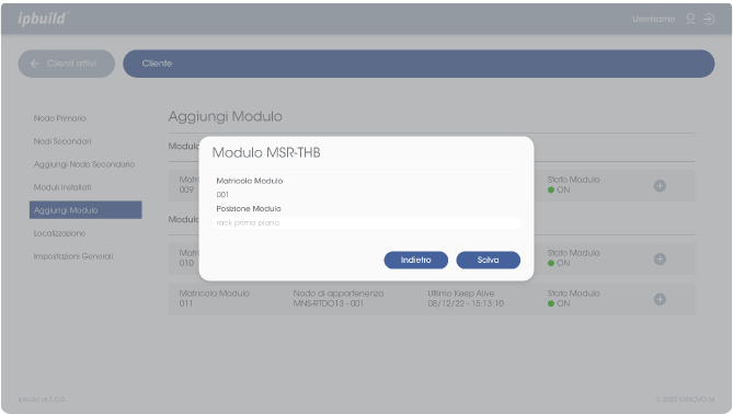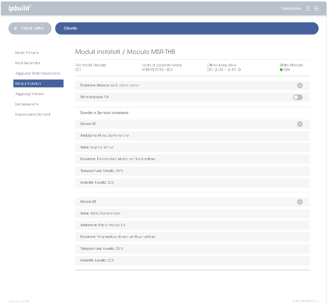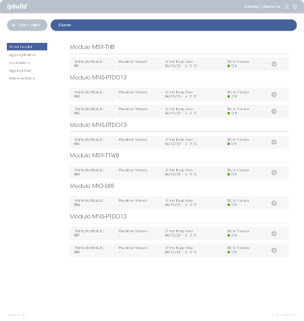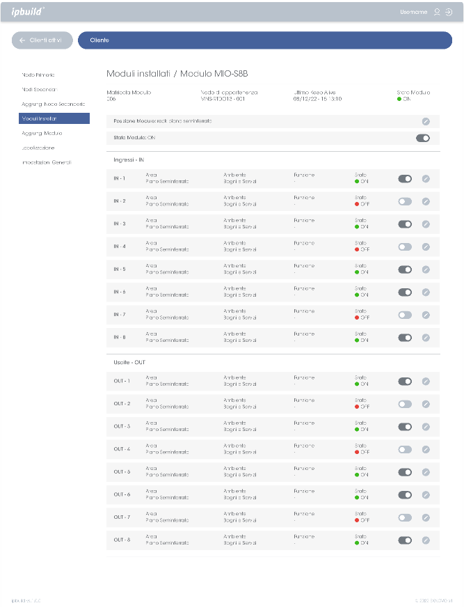 • Adding an ON-OFF label for the status of each module (even if not yet connected to the system)