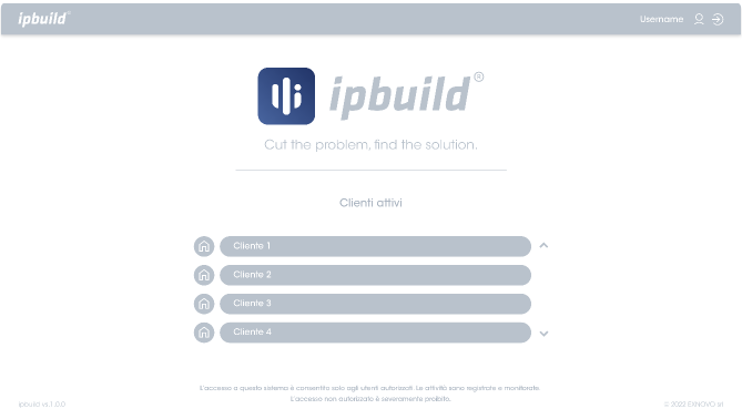 • Username and profile features (logout). A list of clients is paired to each installer. Every account is protected by a password and two-factor identification.